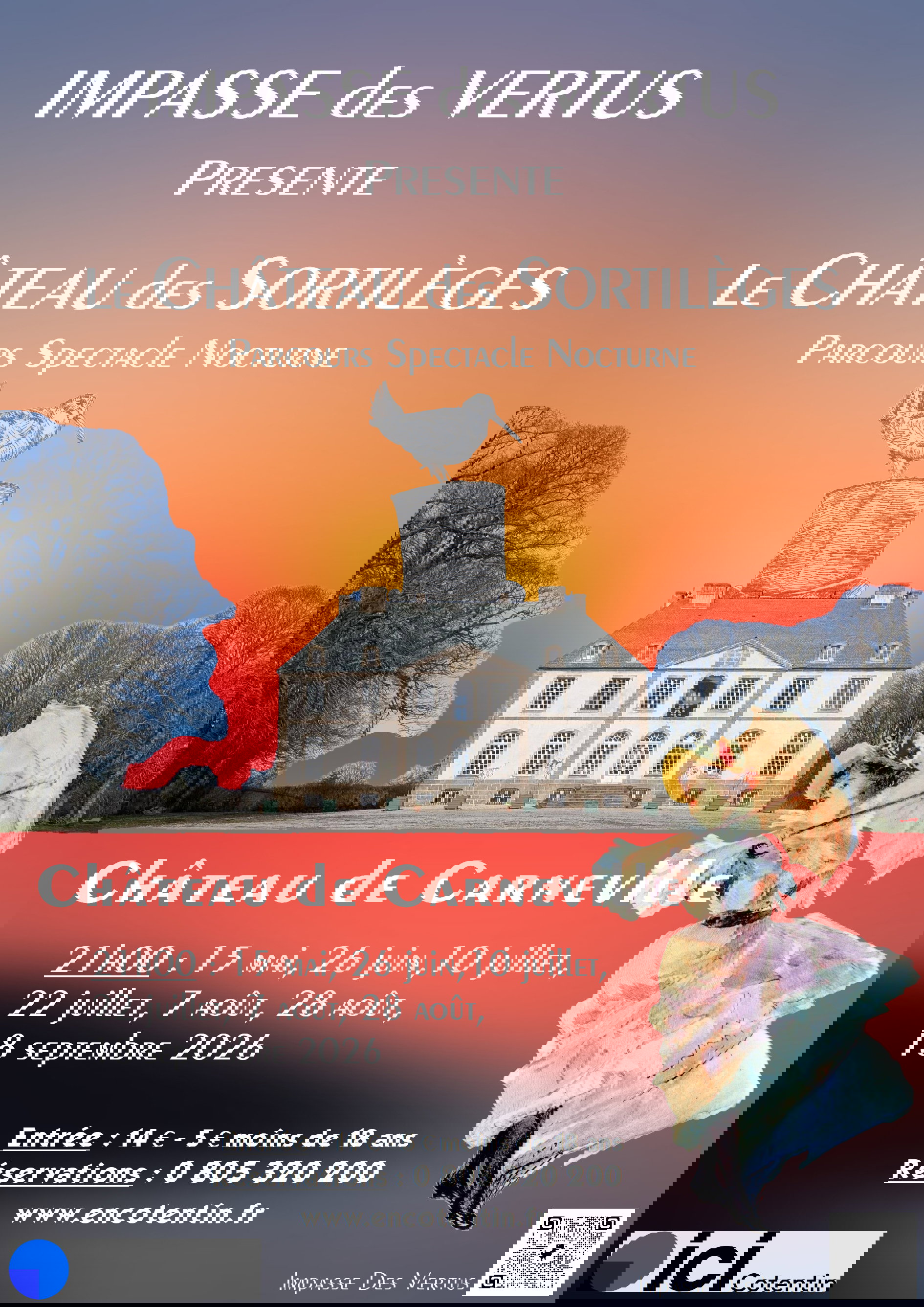 Et nous vous retrouverons le 15 mai 2026, avec une nouvelle édition du parcours-spectacle nocturne "Le Château des Sortilèges" au Château de Carneville (nouveau spectacle) et la création, le 12 juin, du parcours-spectacle nocturne "Le Château-Lyre" au Château de Gratot. Spectacles que nous jouerons tout l'été.